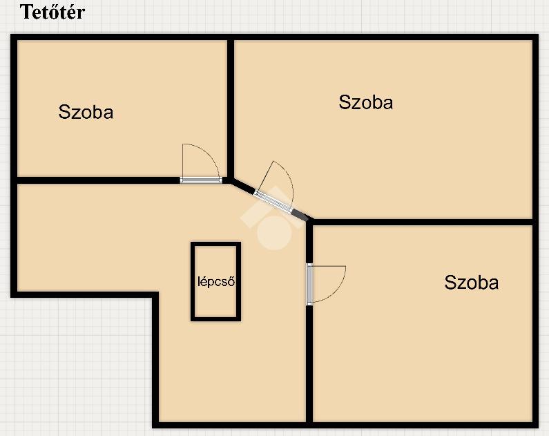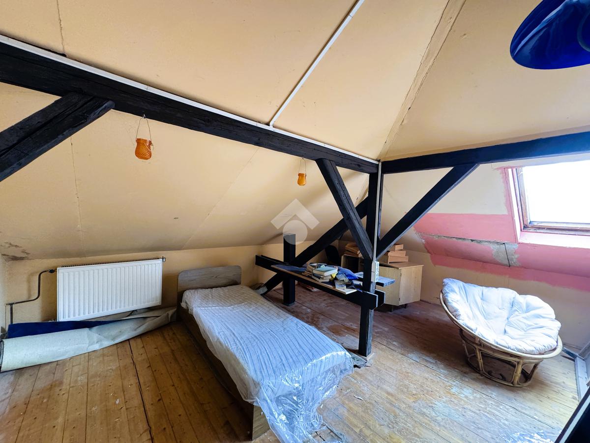 A tetőtérben három különnyíló szoba kapott helyet, a fűtés itt is kialakításra került, a padlóburkolat fa parketta.