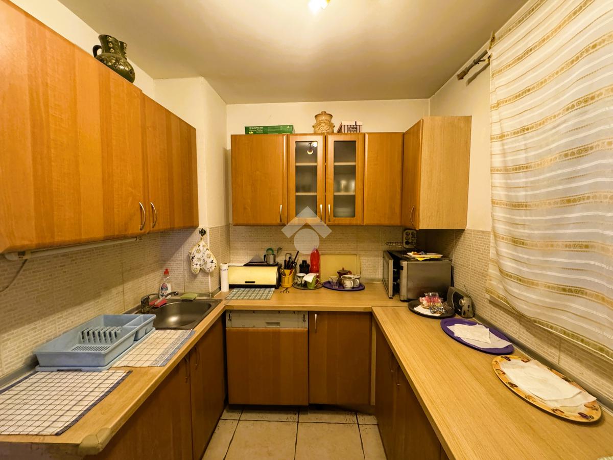 A konyhája ablakos, illetve egyedi konyhabútorral és beépített mosogatógéppel ellátott.