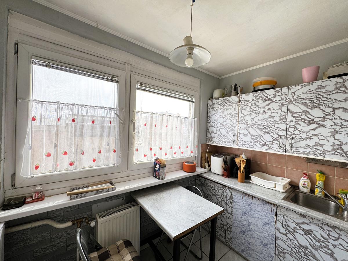 A konyhája ablakos, így természetes fényben gazdag.