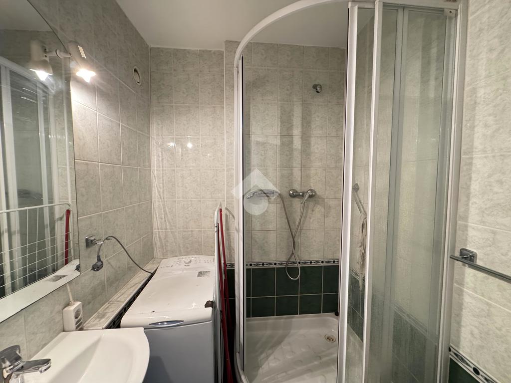 A fürdőszobában a burkolat cserélve lett, valamint zuhanykabin került kialakításra, itt található a mosógép kiállás is.